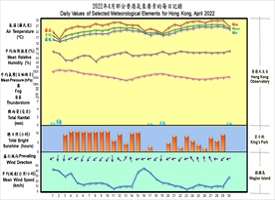 With dry northeast monsoon affecting Hong Kong and less moisture supply to the south China coast for most of the time in the month, April 2022 was much drier than usual in Hong Kong. The total rainfall in the month was 3.5 millimetres, only about 2 percent of the normal figure of 153.0 millimetres and the lowest on record for April. The month was also much sunnier than usual, the total duration of bright sunshine in the month was 191.1 hours, about 69 percent above the normal.