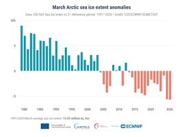 “Copernicus data for March 2026 tells a sobering story: 1.48°C above pre-industrial levels, the lowest Arctic sea ice extent on record for March, and sea surface temperatures again approaching historic highs. Each figure is striking on its own — together, they paint a picture of a climate system under sustained and accelerating pressure.” said Carlo, Buontempo, Director Copernicus Climate Change Service at ECMWF.