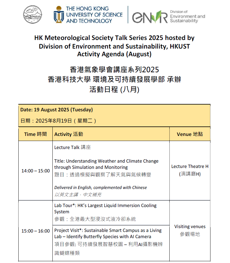 | Our Sky in 2050 | Mr. Wing-mo Leung, Senior Scientific Officer, Hong Kong Observatory |